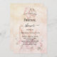 Eine Rose Gold, rot rosa Farbverlauf Hintergrund. Eine blonde Braut im Hintergrund. Personalisieren und fügen Sie einen Namen und Party-Details hinzu.