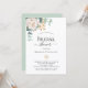Ein schick weißer Hintergrund. Weiße Blumen, Blume (Pony) und grüne Aquarelltöne, Blätter, Grünpflanzen und ein goldenes Imitat. Personalisieren und fügen Sie den Namen der Braut zu sein und Party Details. Schwarze Buchstaben. Zurück: grüne Hintergrundfarbe.