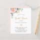 Ein schick weißer Hintergrund. Dekoriert mit einer Rose Gold und rot rosa Blumen, Rose Blume und grüne Aquarell Eukalyptus Blätter, Sprigs, Grün und ein Imitat goldbraun. Personalisieren und fügen Sie den Namen der Braut zu sein und Party Details. Schwarze und goldfarbene Buchstaben. Zurück: Rose goldene Hintergrundfarbe.