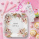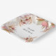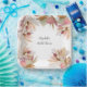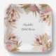 Schöne Brautparty Papier Teller mit hübsch getrockneten BOHO Blume, Pompas Gras, Palmfronten und King Protea. Rosa, brauner Rost, Terrakotta und Grautönen.