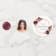 Ein trendiger böhmischer Stil für ein Brautparty. Die Rose sind in Bordeaux und Rosa gehalten. Eleganter weißer oder bordeauxfarbener Hintergrund. Ein Imitat goldener geometrischer Rahmen. Mit dem Text: Brautparty oder Braut geschrieben mit einem handgeschriebenen Stil Skript. Personalisieren Sie und fügen Sie ein Foto zu zwei der Chips (kleine Vorder- und Mittelseite) Template für die Bride, um den Namen zu sein. Burgund oder goldfarbene Buchstaben.