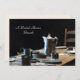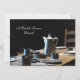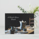 Mein Originalfoto eines alten Westtischs mit Zinntassen, Silberhaken und Holztisch schmückt die Vorderseite dieses klassischen altmodischen Brautparty Brunch mit zwei Seiten. Die Rückseite hat schwarze Schriftzüge auf einem hellen Leinenhintergrund. Sehr elegant! Sie können den Namen, den Veranstaltungshinweis, das Datum, den Ort usw. leicht personalisieren. Original Foto von Marcia Socolik. Alle Rechte vorbehalten © 2014 Alan & Marcia Socolik.