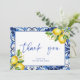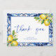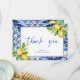Das Brautparty "Dankeschön Card" von Blue Tiles Lemons ist ein anmutiger Ausdruck von Dankbarkeit, der mediterranen Charme verleiht. Mit klassischen blauen Kacheln und lebhaften Zitronen besticht diese Karte durch ihre wunderbare Atmosphäre und das Wesen einer sonnengetränkten Feier. Diese Karte ist ideal, um Gäste, die an Ihrem besonderen Tag teilgenommen haben, zu würdigen. Sie verleiht Ihrer Botschaft eine Touch von Eleganz und Wärme. Ideal für Bräute, die mediterrane Ästhetik und nachdenkliche Gesten schätzen. Unsere Dankeskarten sorgen dafür, dass jede Stimmung stilvoll vermittelt wird. Informieren Sie sich über neue Produkte und mehr mediterran inspirierte Ideen, um Ihr Brautparty zu verbessern.