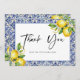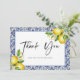 Das Brautparty "Dankeschön Card" von Blue Tiles Lemons ist ein anmutiger Ausdruck von Dankbarkeit, der mediterranen Charme verleiht. Mit klassischen blauen Kacheln und lebhaften Zitronen besticht diese Karte durch ihre wunderbare Atmosphäre und das Wesen einer sonnengetränkten Feier. Diese Karte ist ideal, um Gäste, die an Ihrem besonderen Tag teilgenommen haben, zu würdigen. Sie verleiht Ihrer Botschaft eine Touch von Eleganz und Wärme. Ideal für Bräute, die mediterrane Ästhetik und nachdenkliche Gesten schätzen. Unsere Dankeskarten sorgen dafür, dass jede Stimmung stilvoll vermittelt wird. Informieren Sie sich über neue Produkte und mehr mediterran inspirierte Ideen, um Ihr Brautparty zu verbessern.