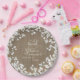 Ein wunderschönes Design für ein rustikales Land, Außen- oder Scheunenbau Brautparty-Dekor. Dieser Trend im Hochzeitsstil 2016 hat einen abgenutzten, bedrückten, verwitterten Hintergrund aus Stallholz mit einem Kranz aus Babyatmen als Rand zum Teller und einer Schriftzeichen-Typografie mit eleganten geblüht Schriftrollen, die "Brautparty" lautet. Die Braut- und Bräutigamen sowie das Hochzeitstermin sind mit einem einfachen Vorlagenfeld für diese besondere Touch personalisiert. Originelle Kunstwerke, die von Audrey Jeanne Roberts in Ölpasten handgemalt wurden, sind diese Blume frisch und delikat. Mit einer schlichten Eleganz, die eine wunderbare Passage für Hochzeiten ist. Auch für andere Anlässe verfügbar. Melden Sie uns einfach und wir erstellen den Text für Sie (in der Skriptkalligrafie).