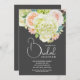Brunch und Bräunungsdusche laden Sie ein, Ihre Details in schicken Schriftzeichen auf braunem Hintergrund (oder in jeder beliebigen Farbe) mit wunderschönen Aquarellfarben-Blume - weiße und grüne Hydrangeas, rosa und cremefarbene Rose, Gänsebläschen, kleine Stiele und Blätter. PASSENDE Artikel in unserer Sammlung.