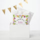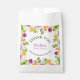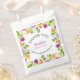 Gastgeschenk Taschen mit Ihrer Formulierung und lila und orangefarbene Blume mit grünen Blätter und Ihre Details in schicken Schriften. WEISSE, ECRU- ODER KRAFT-Taschen. PASSENDE Artikel in unserem Geschäft.