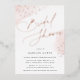 Einfache und elegante Brautdusche mit schicken, modernen Kalligrafieplakaten in Rose-Goldfolie, flankiert von den reinen Waschbecken von rot rosa Aquarell und winzigen Folienstars. Personalisieren Sie Ihre Brautparty-Details unten. Elegante Blumendusche-Einladungen kehren zu massivem Rosa zurück.