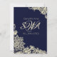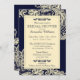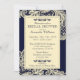 Elegantes Creme-Spitzen-Design über marinebasierten Hintergrund Farbe Brautdusche Einladungskarte.