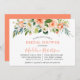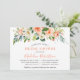 Die moderne elegante Watercolor Coral Floral Bridal Dusche Einladungskarte beinhaltet Rose aus Korallenpfirsichen, weiße Blume und botanische Blätter aus Grünpflanzen. Trendy Kalligrafie Script.
