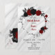 Romantische Schwarz-Rot-Blume und graue Blätter auf Marmorboden botanisch silberne Krandusche Einladung Glitzer Details werden simuliert