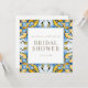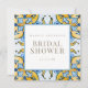 Blauer und gelber Brautdusche Einladung. Quadrat. Gold-Text. Mittelmeer.