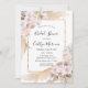 Elegante böhmische tropische Blätter aus getrockneten Palmen, Pampas-Gras und weiße Orchideen und Rose Brautduschen Einladungen.