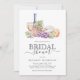 Raffinierte Brauduschen mit einer Auswahl an Wasserfarbenkäse, Weintrauben und Wein, gefolgt von einer eleganten Brautformel, die leicht zu personalisieren ist.