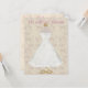 Elegante Brautparty-Einladung erfolgt in einem weichen beige und rosa Blumenhintergrund, mit Grafiken eines weißen Hochzeitskleides auf einem goldenen Stand. Fertigen Sie alle Textbereiche auf dem hinteren und das vorder von dieser großen Karte zum Anzug Ihr Bedarf besonders an. Ändern Sie Schriftartart, -größe und -farben auch, wenn Sie wollen.