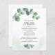 Brautparty Greenery Eukalyptus Watercolor Einladungskarte mit schwarzem Hintergrund und trendiger Typografie. Eine großartige Wahl für eine botanische Hochzeitsdusche. Passen Sie die leicht zu bedienende Textvorlage mit Ihren Duschereignisdetails an, indem Sie oben auf den Button "Personalisieren" klicken. Während der Text "Baby" Set ist, kann die Erholung des schwarzen Textes auf Anzug des Ereignisses geändert werden