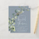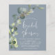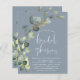 Budget Dusty Blue Eukalyptus Greenery Sukkulent Botanische Wasserfarben Frühlingsdusche Hochzeitsdusche Einladungen auf weißem Hintergrund - beinhaltet schöne und elegante Schrift Typografie mit modernen botanischen Blätter und Grün für die besondere Braut zu sein zu feiern.
