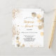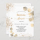 Weißer Hintergrund mit goldenem Eukalyptus und Imitaten goldener Glitzer Staub. Personalisieren und den Namen der Braut zu sein und Party Details. Schwarze und goldfarbene Buchstaben. Zurück: weißer Hintergrund mit goldenen Imitaten Glitzer Staub.