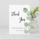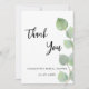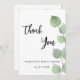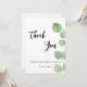 Ein Dankeschön für ein Brautparty. Ein eleganter weißer Hintergrund mit Eukalyptusgrün. vorne große schwarz gefärbte handgeschriebene Skript und den Text: Danke, Ihr und ein Datum. Zurück: Personalisieren Sie Ihre Dankeschön Notiz und Name.