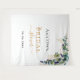 Ein schick weißer Hintergrund. Dekoriert mit grünen Aquarellen Eukalyptusbäumen, Blätter, Grünpflanzen und vergoldeten Imitaten. Personalisieren und fügen Sie den Namen der Braut zu sein und ein Datum. Schwarze und goldene Buchstaben. Kann als Begrüßungsbanner für Brautpartys, als Party-Wanddekoration oder als Foto-Standbanner verwendet werden.