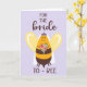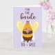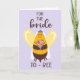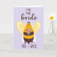 Das ist eine lustige Brautparty-Karte mit einer Biene, die eine Krone trägt, mit einem Schleier, der einen Strauß Blume mit einem weißen Band trägt. Im Text steht "Für die Braut zu sein".