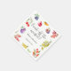 Leider ist beim Bestellvorgang nicht die Größe angegeben, zumindest habe ich es nicht gesehen. Der Name "Duschen"-Servietten ist etwas seltsam :-) Aber man kann aus verschiedenen Designs auswählen und es sieht ganz nett aus. Ich würde mir aber noch viel mehr verschiedene Farben und Muster wünschen! Insgesamt eine nette Idee für ein personalisiertes Accessoire zu allen möglichen Feiern. Der Druck ist OK, er ist nur ganz leicht unscharf.