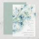 Brautdusche Einladung mit kleinen weißen Blume. Handgezeichnete abstrakte Blume auf blaugrünem Hintergrund. Weiche, Verzierte Aquarellmalerei. Abstrakte Naturkulisse mit niederen Zigeunerzweigen. Vintage niedliche Blumenzweige, elegante Blume, Blumendesign im Frühling oder Sommer, romantisches Bouquet. Botanisches Grundstück. Delikate Blume Botany Brautdusche Einladung. Kleine Kollektion weißer Blume.