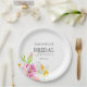 Diese Brautparty-Papier-Teller verfügen über eine untere Grenze von Aquarellfarben-Blume in Rosa-, Orange- und Lavendeltönen lila. Verwenden Sie die Vorlagenfelder, um Ihren benutzerdefinierten Text hinzuzufügen. Eine elegante Wahl für Hochzeiten mit Blumenmotiv oder botanischen Brautpartys im Garten. Einzigartige Aquarellkunst und Design von Victoria Grigaliunas of Do Tell A Belle.