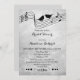 Elegante Brautdusche mit zwei Liebesvögeln auf Drähten im Musikstil mit Noten auf schwarz-weißem Hintergrund mit Spitzen. Wunderschön für eine Braut, die ein Musikinstrument oder Lieben spielt.