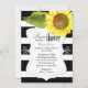 Posh Aquarell Sonnenblumen und Blatt & moderne schwarz-weiße Streifen im Hintergrund illustriert auf individuelle Bridal Dusche Einladungen. Einzigartiges Blumendesign für Ihr bevorstehendes SUNFLOWER THEME BRAUTPARTY | POLTERABEND SCHWARZ UND WEISS | MODERNES LAND BRAUTPARTY oder CHIC TYPOGRAPHY FLORAL POLTERABEND! ((Sie finden die passenden Hochzeitsessentials & Favoriten in diesem Laden, Bridal Heaven. Wenden Sie sich an ujean4791@gmail.com, um sich mit der Arbeit und/oder der Koordinierung von Hochzeitsaufträgen zu befassen.)