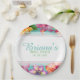 Helle und farbenfrohe hübsche tropische Hibiskus-Blume auf Aqua-Hintergrund als Ober- und Untergrenzen mit Center Aqua und Grün personalisierbaren Text zu personalisieren Brautparty Details.