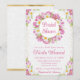 Herrliche Aquarellfarben Rosa Tulpen und Daffodien Blume schwitzen Blumenrahmen-Design mit vergoldeten Glitzer Konfetti und rustikal weißen Spitzen Hintergrund