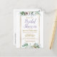 Die sanften Blume im mittleren Sommer in einem goldenen Doppelrahmen sind in Lavendel-, Weiß- und botanischen Schnörkeln gehalten. Passen Sie diese Bridal Dusche Postkarte mit Ihren eigenen Farben und Schriftart an oder behielt Sie diese beliebte Typografie so, wie es für Sie ist.