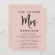 Die zeitgenössische, preisgünstige "The Future Mrs."-Brautdusche in rosa rot mit "Mrs." in einem großen eleganten Drehbuch geschrieben.