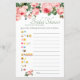 Fügen Sie dieses lustige Emoji Pictionary-Spiel hinzu. Mit schönen Blumen und rosa Blumen. Die Koordination der floralen Rückseite ist inbegriffen. In unserem Zazzle-Shop finden Sie passende Artikel, um Ihre Veranstaltungskollektion abzuschließen! HINWEIS: ANTWORTEN SIND AUF DER RÜCKSEITE ENTHALTEN