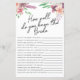 Brautparty Spaß Wie gut kennen Sie das Bride-Spiel. Personalisieren Sie dieses zweiseitige Spielblatt, indem Sie den Namen und das Duschdatum der Braut hinzufügen. Bitte Karo aus der gesamten Kollektion, um weitere passende Artikel zu sehen.