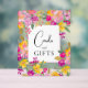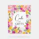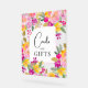 Gartenfarbene Aquarellkarten mit leuchtend blühenden Brautpartys und Geschenke mit handbemalten rosa, lila, gelben Blumen und grünen Eukalyptus-Blätter und Blattwerk mit einem modernen Skript-Bürste Schriftart.