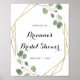 Dieses geometrisch angelegte Poster im Grünen des Brautparty ist perfekt für einen Polterabend. Das Design umfasst handgezeichnet botanisch grüne Eukalyptuszweige und Blätter, die einen goldenen geometrischen Rahmen schmücken.