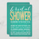 HERRLICHES Smaragdgrün und Gold farbige moderne Typografie dennoch mit einem herrlichen weichen Vintagen Blick und einem Gefühl. Fügen Sie Ihren eigenen Text der Schablone hinzu, um dieses populäre, Qualität, berufliche, Druckschimmernflache Karte der Brautpartyeinladung zu schaffen. Herrlicher WEICHER Hintergrund des farbigen Papiers des Aqua des blauen Grüns mit atemberaubender schimmerngoldtypographie.