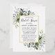 Die moderne Elegant Watercolor Botanical Greenery Bridal Shower Invitation Card beinhaltet Eukalyptus-Blätter, grünes botanisches Blattwerk, staubblaue Blätter und andere schöne botanische Pflanzen. Trendy Kalligrafie Script. Legen Sie die Farbe grün zurück. Goldfolie.