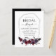 Halloween 31. Oktober Herbst Herbst Dunkle Wasserfarbe Dunkle Lila Hochzeitsdusche Einladungen auf schwarzem Hintergrund - beinhaltet eine beängstigende und elegante Schrift Typografie mit modernen Blume und Bat Wings für die besondere Creepy Bride to Be Day Feier.