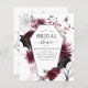 Budget Halloween 31. Oktober Herbst Herbst Dunkle Wasserfarbe Burgundy Hochzeitsdusche Einladungen auf schwarzen Hintergrund - beinhaltet eine beängstigende und elegante Schrift Typografie mit modernen Blume und Bat Wings für die besondere Creepy Bride to Be Day Feier.