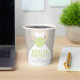 Elegantes Brautkleid mit possisch-weiß-grün-stilisierten Rose blumengeschmückt und graues Brautparty mit einem Einwegpapier-Becher. Bearbeiten Sie diese Becher mit Ihrem eigenen Namen, um den Namen der Braut zu ehren. Ideal für den Einsatz in einem Brautparty Party und passt zum Kleid Bouquet Rose Hochzeit Set. © Original Graphic Art and Design von Sarah Trett. www.mylittleedenweddings.com