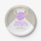 Elegantes Brautkleid mit lila stilisierten Rose, floral und grauem Brautparty-Einwegpapier-Platte. Bearbeiten Sie diese Teller mit Ihrer eigenen Ehrenbride, um den Namen zu erhalten. Ideal für den Einsatz in einem Brautparty-Party und passt zum Kleid Bouquet Hochzeit stationären Set. Einzigartiges Design und grafische Kunst von Sarah Trett.