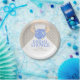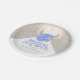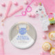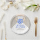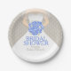 Elegantes Brautkleid mit blauen stilisierten Rose, blumig und grauem Brautparty, auf der Papiertüte. Bearbeiten Sie diese Teller mit Ihrer eigenen Ehrenbride, um den Namen zu erhalten. Ideal für den Einsatz in einem Brautparty-Party und passt zum Kleid Bouquet Hochzeit stationären Set. Einzigartiges Design und grafische Kunst von Sarah Trett.