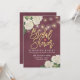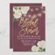 Bridal Shower Einladungs-Card Vorlagen - Elegante weiße, hübsche Hydrangea-Blume und Streichelleuchten auf Burgund Rot Hintergrund. Ein perfektes Design für Ihren großen Tag! Alle Textstile, Farben, Größen können an Ihre Bedürfnisse angepasst werden.