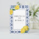 Personalisieren Sie diese Amalfi Coast Mediterrane Zitronenkarte mit Ihren eigenen Formulierungen einfach und schnell, drücken Sie einfach die Schaltfläche Anpassen, um den Stil und die Platzierung des Brautparty weiter zu ordnen und zu formatieren.