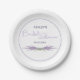 Auf dieser Papierplatte aus Brautparty befinden sich lavender-Blume-Stalkbündel, die unten mit den Initialen der Braut im Oval, das die gegnerischen Stalks verbindet, zusammengefasst sind. Personalisieren Sie den Text in den Vorlagenfeldern, oder klicken Sie auf Anpassen, um den gewünschten Schriftstil, die gewünschte Schriftgröße und Farbe auszuwählen.