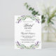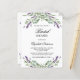 Ein weißer Hintergrund. Mit violetten Lavendel-Blume und Eukalyptus-Pflanzen dekoriert. Personalisieren und fügen Sie einen Namen und Party-Details hinzu. Der Name wird mit einem handgeschriebenen Stilskript geschrieben. 1 Blatt Papier = 1 Einladung mit Druckkante zum Rand.