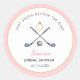 'Letzter Schwung vor dem Ring' Einfache und elegante Rosa und Weiß Golfing Thema Brautparty Party Aufkleber mit handgemalten Aquarellgolfklubs und Ball.